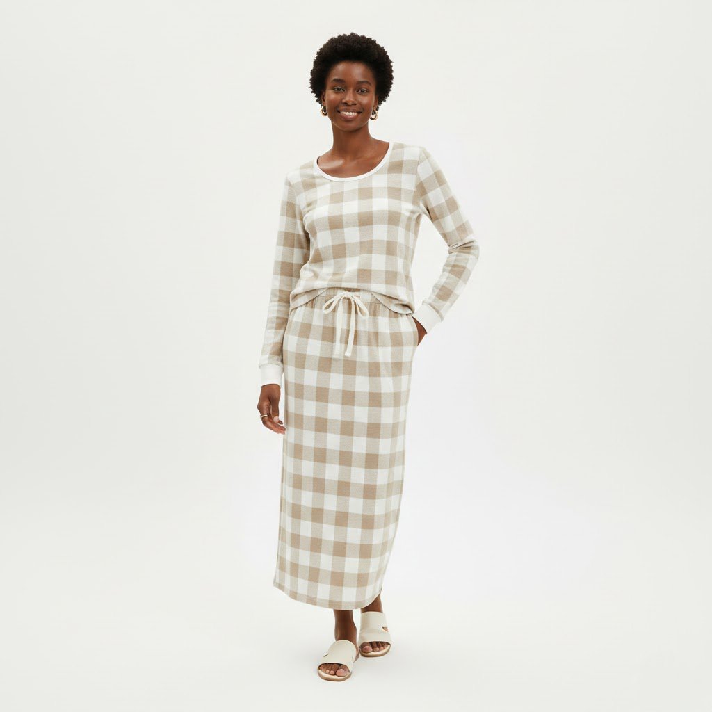 Soft, simple, and beautifully modest — The Quiet Grace Plaid Pajama Skirt Set was designed for women who value peace, comfort, and grace in every season of rest.